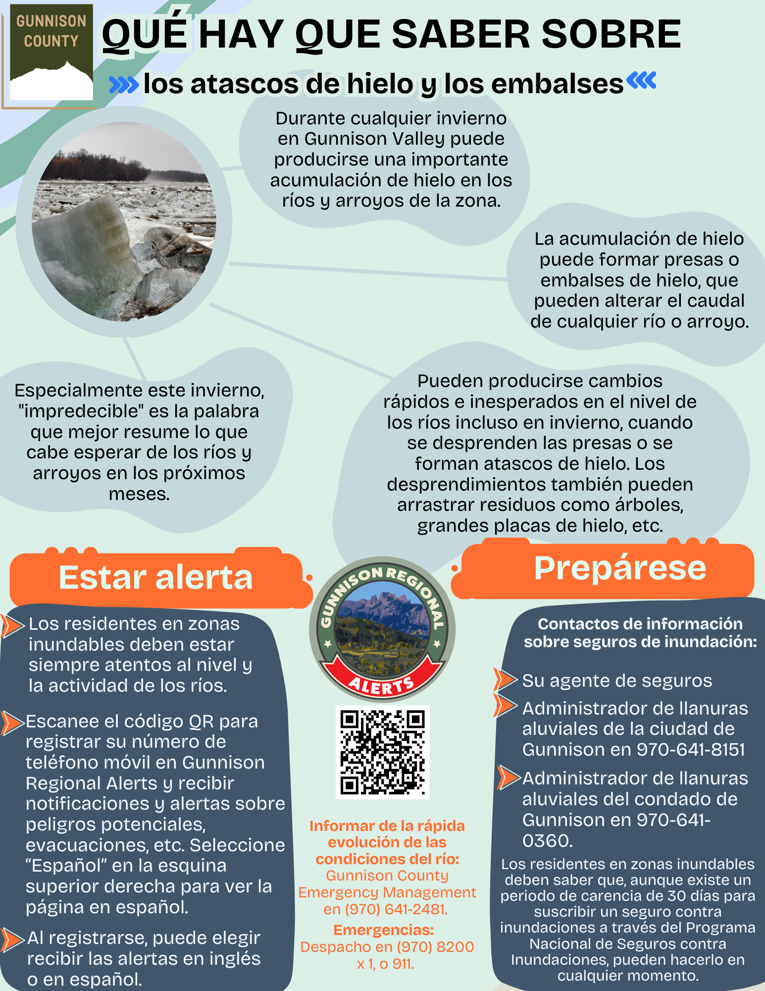 The Gunnison Valley has experienced prolonged cold and subzero temperatures more this winter compared to last winter. This type of weather can lead to an increase in the occurrence of ice dams and jams. On January 23rd, there were reports of an ice dam affecting some residences. Read the news release below for more information and check out the infographic about ice jams and dams.